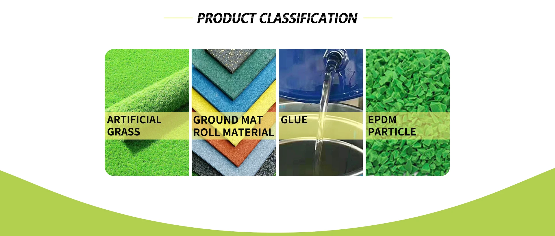 Productos principales:Gránulos de plástico EPDM, césped artificial, alfombrilla de goma, adhesivo, rollo de goma